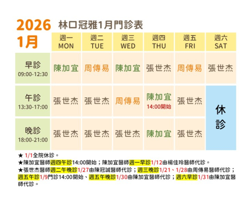 【🏵林口冠雅復健科診所115年1月門診表】 ★…