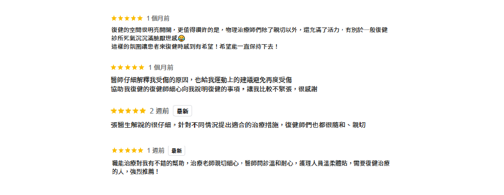 我們的醫師團隊由多位專業且富有經驗的復健醫學專家組成,致力於為每一位患者提供全方位、個人化的治療服務。團隊成員專精於復健相關領域,包括骨科復健、神經復健、運動醫學等,並密切合作,制定最佳的治療方案。我們秉持專業、耐心與關懷的態度,協助患者恢復健康、重拾自信,陪伴您邁向更美好的生活。